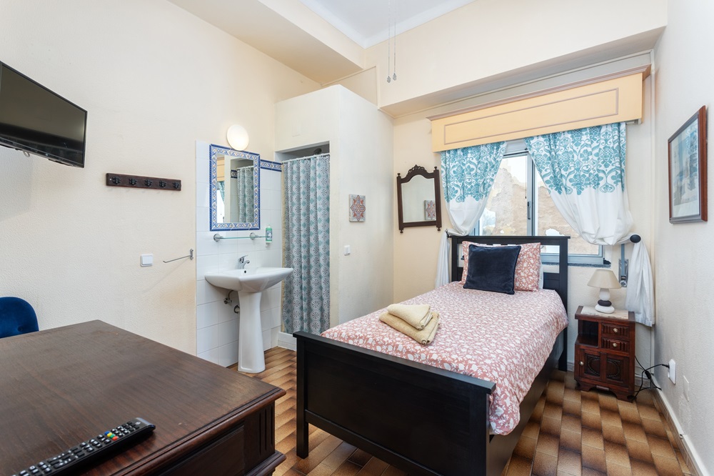 “Farol” is on the 1st floor and has one single bed with shower/basin in the room and shared toilets on each floor.